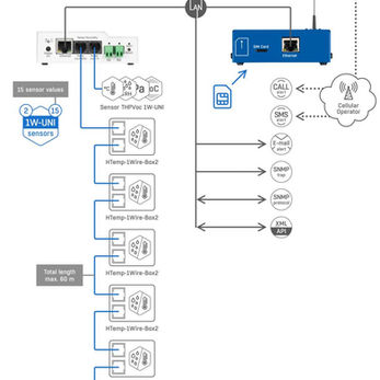 LAN & WEB thermometer with LTE GW for SMS and Call alerts and monitoring software